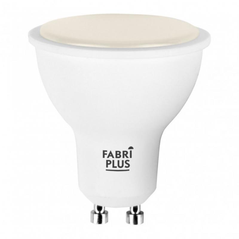 Bombilla LED DICROICA GU10 de la serie FABRIPLUS, realizada en policarbonato blanco y metal. Con portalámparas GU10, tiene una potencia de luz de 9 watios, 810 lúmenes y 4000K de temperatura de luz, blanco natural. Sus medidas son de 5,8X4,9X4,9 centímetros y tiene un peso neto de 35 gramos.