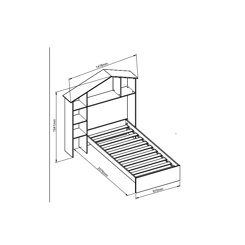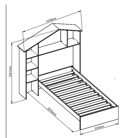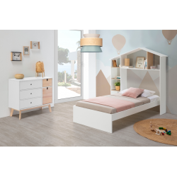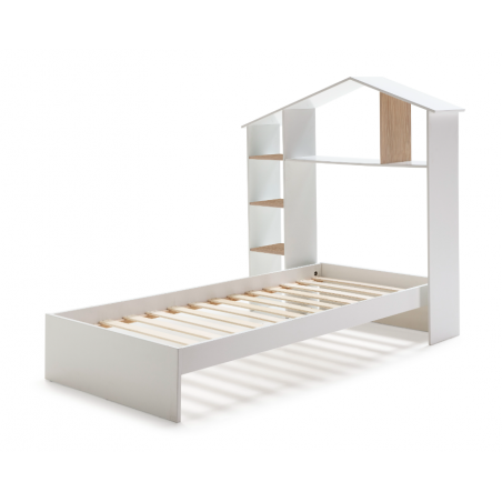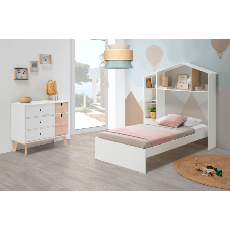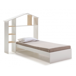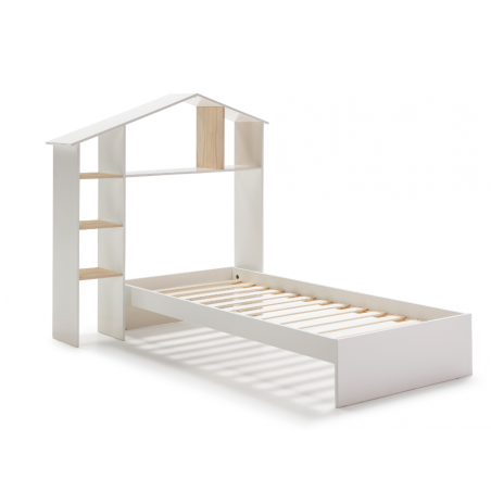 CAMA+ESTANTERÍA CABAÑA MARIAN - PINO/DM BLANCO-NATURAL 90X190