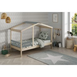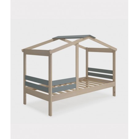 La cama cabaña Montessori modelo Angela, es ideal para crear espacios de ensueño, llena tu hogar de energía y felicidad. La cama Cabaña Montessori Modelo Angela se compone una cama con estructura en melamina de alta calidad color arce americano y madera maciza de pino natural en color verde kaki, incluye un somier con listones en madera natural, perfecto para colchones de 90x190 cm. Esta cama destaca por su diseño tan original y exclusivo.