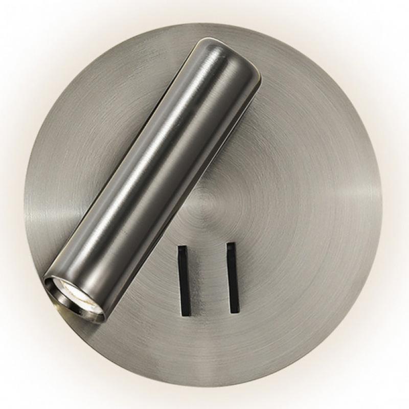 Aplique serie MANET REDONDO de color NÍQUEL. Está realizado de metal. Con TECNOLOGIA LED INTEGRADO. De estilo moderno y minimalista. Tiene un FOCO ORIENTABLE de 2w y 130 lúmenes, y una LUZ AMBIENTE indirecta de 6w y 450lúmenes, (ambas en color 4000K blanca neutra) que se activan con dos interruptores independientes. El foco tiene una medida de 11 cm y es orientable en 350º, además de plegable en 90º. Tiene una dimensión total de 14x14x12 centímetros. Este modelo lo tenemos también disponible cuadrado, en color negro y en color blanco.