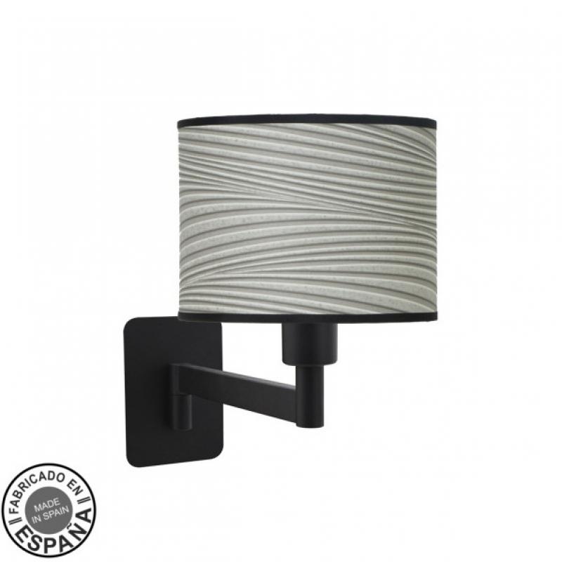 Aplique abatible de la serie MODA de color NEGRO y pantalla de diseño SURCO GRIS. De estilo moderno, pero con líneas sencillas, idóneo para ambientes decorados con los nuevos estilos como el minimalista, Boho Chic o incluso Industrial a juego con el resto de su decoración, mezclando colores y texturas. Su ángulo de luz puede orientarse gracias a que su brazo es abatible en el plano horizontal. Aportan calidez a dormitorios, entraditas y centros de trabajo. Posee un portalámparas E14. Bombilla no incluida. Sus dimensiones son de 26x17x28 centímetros. Podemos adquirir en esta serie una gran cantidad de productos a juego, con una gran variedad de diseños y colores de pantallas en sus ventiladores, tres tamaños de colgantes, apliques, sobremesas y pies de salón.