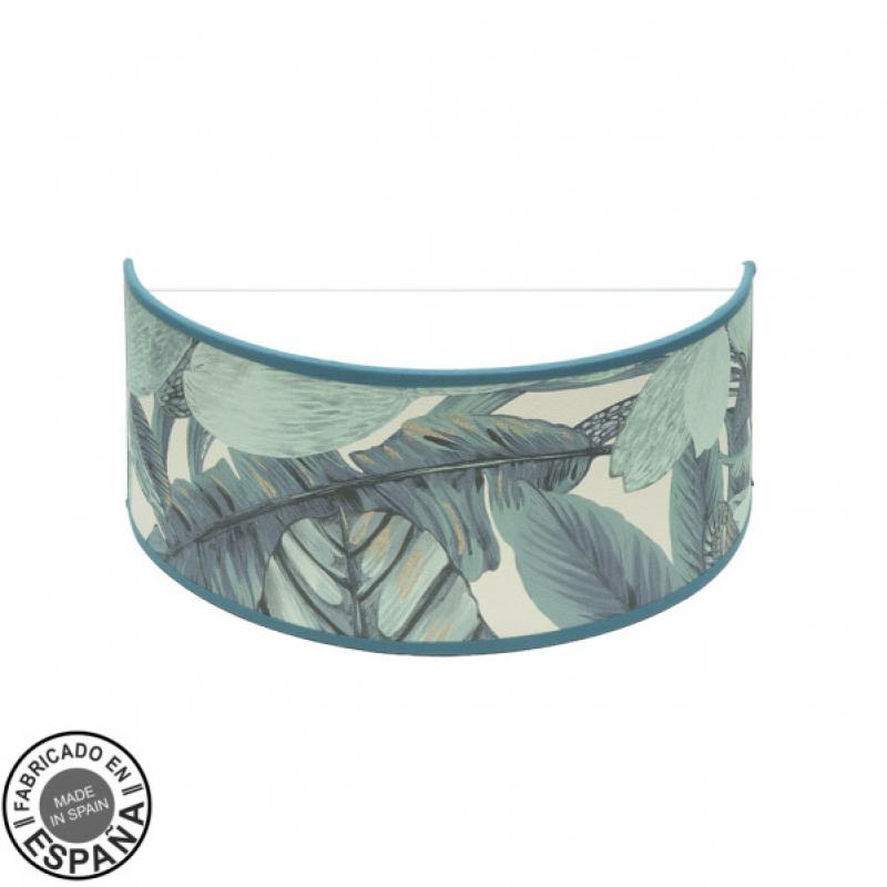 Aplique de la serie ARGEL con pantalla de diseño HOJA AZUL. Realizado en metal y textil. De estilo moderno, pero con líneas sencillas, idóneo para ambientes decorados con los nuevos estilos de decoración en los que se incluyen plantas y estampados florales creando contrastes. Los colores de su estampado transmiten tranquilidad y equilibrio al ambiente que iluminan, idóneos para ambientes cálidos y frescos al mismo tiempo, ideal para zonas mediterráneas y abocadas al descanso. Muy decorativo, perfecto para mezclarse también con otras estéticas creando un espacio único, con personalidad y estilo en dormitorios, entraditas, comedores y zonas de trabajo. Posee un portalámparas E27. Bombilla no incluida. Sus dimensiones son de 16x33x45 centímetros. Podemos adquirir en esta serie una gran cantidad de productos a juego como son plafones de 30, 40, 50 y 60 centímetros de diámetro, dos tamaños de sobremesas, aplique y el pie de salón, todos combinando con blanco/hoja azul.