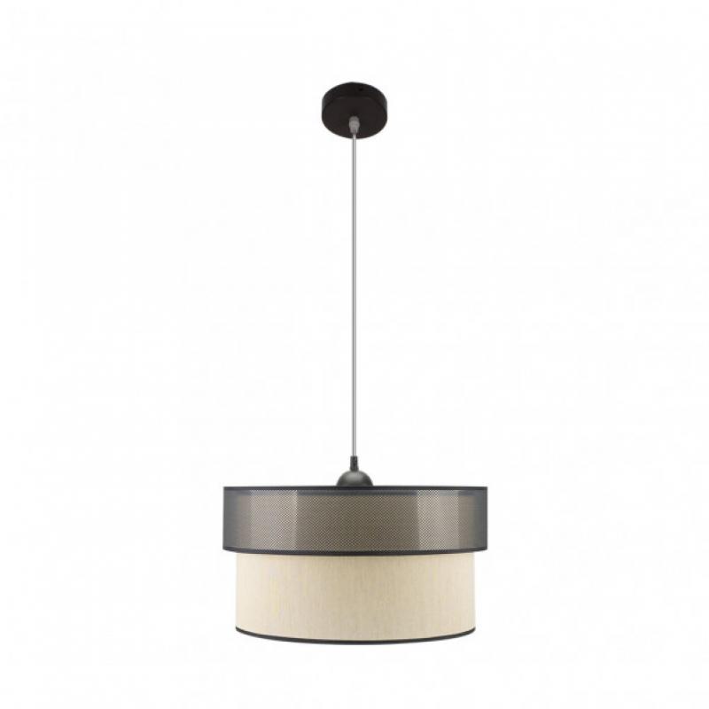 Colgante de la serie FELIX de color NEGRO/DORADO. Realizado en metal y textil, se compone de dos pantallas, una más estrecha de tela de malla negra que corona la pantalla más ancha de color dorado, todo ribeteado en negro, resultando una bonita combinación de texturas y juego de colores. De estilo moderno y sencillo, a la par que elegante y original, ideal tanto para dormitorios, salones y salas de estar abocadas al descanso, como para comedores y lugares de trabajo. Posee un portalámparas E27. Bombilla no incluida. Tiene unas dimensiones, regulables en altura, de 35<,148x40x40 centímetros, y un peso neto de 810 gramos. En esta serie podemos encontrar tanto el colgante de 40 centímetros de diámetro como el de 50 centímetros  de diámetro, disponibles ambas medidas en negro/blanco, negro/rojo y negro/dorado.