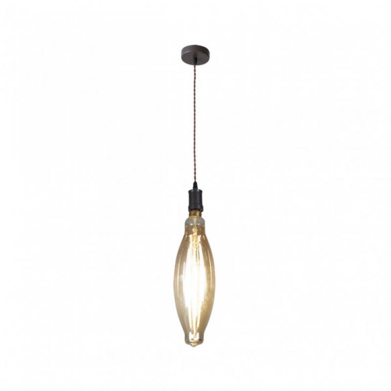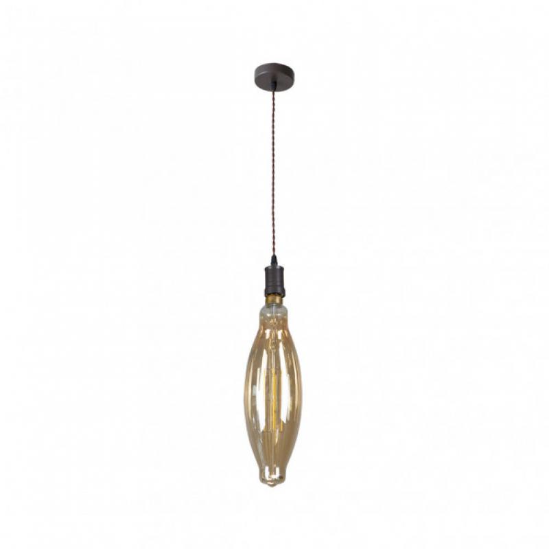 Colgante de una luz de la serie LILIA de color MARRON/AMBAR. Realizado en metal, destaca por el diseño moderno  y diferente de su bombilla LED alargada con filamentos, con una potencia de 8 watios, 640 lúmenes y luz cálida, 3000K, con un portalámparas en E27, lo que hace posible cambiar su bombilla cambiando así la estética y luz de la lámpara. Bombilla DECORATIVA VINTAGE incluida. De diseño original ideal para dormitorios y salas de estar e incluso para zonas de trabajo y rincones especiales en casas decoradas con estilo moderno, encajando también muy bien en ambientes decorados con los nuevos estilos Industrial y Vintage. Sus dimensiones, regulables en altura, son de 68<,126x12x12 centímetros.