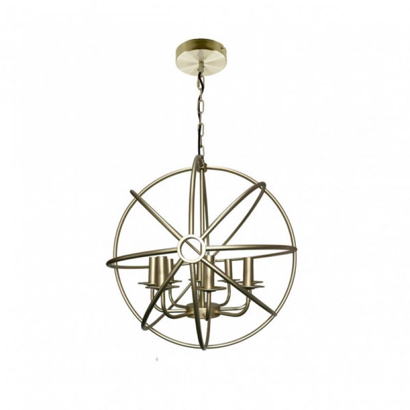 Colgante de ocho luces de la serie ARNESES en color ORO. Compuesta por una doble estructura, una interior con brazos donde se encuentran los portalámparas, y otra exterior que le da una forma esférica a el colgante, resultando una muy moderna y original estructura metálica, muy decorativa, ideal para salones decorados tanto moderno, con el nuevo estilo Vintage como de estilo Rústico moderno, tomando el papel central de la estancia que ilumina. Muy aconsejable completar con unas bonitas bombillas decorativas para conservar su estética. Posee ocho porta lámparas E14. Bombillas no incluidas. Sus dimensión, regulable en altura desde 65 hasta 150 centímetros, es de 65<,150x52x49 centímetros.