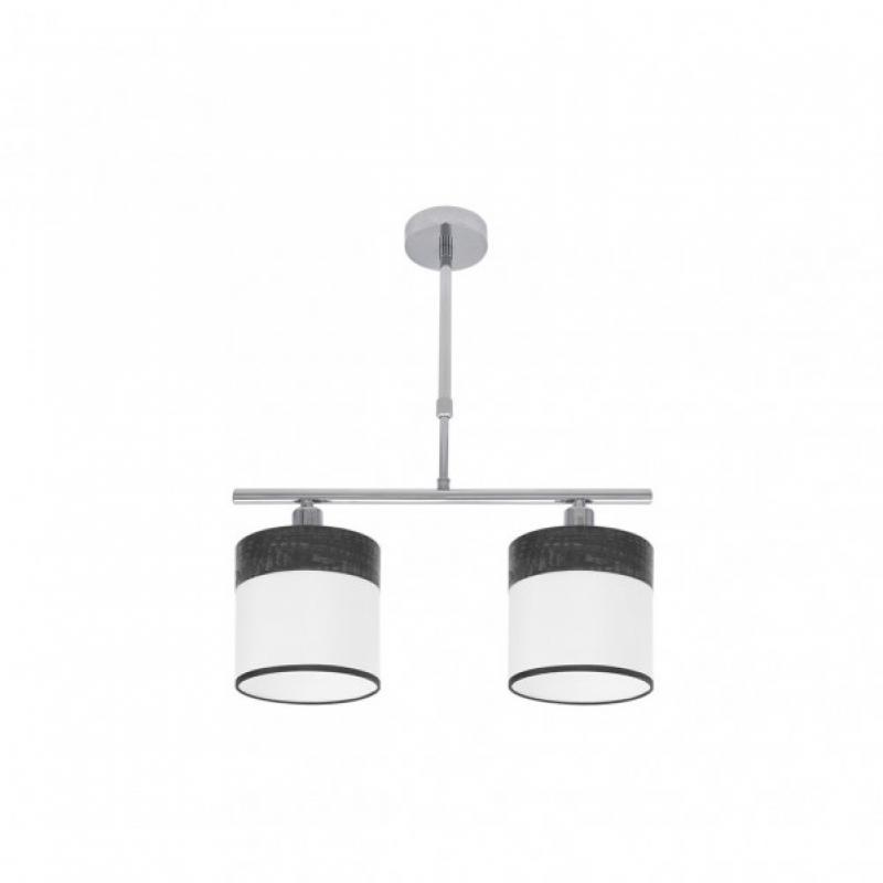 Lámpara de diseño de la serie CLOE de color CROMO con pantalla BLANCA/MADERA NEGRA. Realizado en metal y textil. De estilo moderno, presenta en su pantalla un contraste de colores, resultando muy original y decorativo para iluminar en dormitorios, comedores, salones y zonas de trabajo, creando un ambiente diferente. Posee dos portalámparas E14. Bombillas no incluidas. La lámpara tiene unas dimensiones, regulables en altura, de 44<,61x43x14 centímetros. En esta serie, encontramos a juego los colgantes de 40 y 50 centímetros de diámetro, regleta de 3 luces, plafón de 3 luces, lámparas de 2, 3 y 4 luces, el pie de salón, y un tamaño de sobremesa, todas las versiones combinando el color blanco con los colores de madera: madera clara, madera oscura, madera gris y madera negra. Una amplia gama para elegir el que mejor se adapte a su decoración dando un toque de color a la estancia que ilumina.