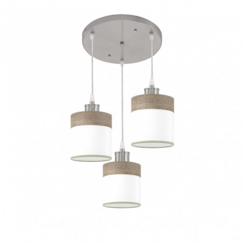 Plafón de diseño de la serie CLOE de color NÍQUEL con pantalla BLANCA/MADERA GRIS. Realizado en metal y textil. De estilo moderno, presenta en sus pantallas un contraste de colores, resultando muy original y decorativo para iluminar en dormitorios, comedores, salones y zonas de trabajo, creando un ambiente diferente. Posee tres portalámparas E27. Bombillas no incluidas. Con altura regulable, el plafón tiene unas dimensiones de 43<,105x42x42 centímetros. En esta serie, encontramos a juego los colgantes de 40 y 50 centímetros de diámetro, regleta de 3 luces, plafón de 3 luces, lámparas de 2, 3 y 4 luces, el pie de salón, y un tamaño de sobremesa, todas las versiones combinan el color blanco con los colores de madera: madera clara, madera oscura, madera gris y madera negra. Una amplia gama para elegir el que mejor se adapte a su decoración dando un toque de color a la estancia que ilumina.