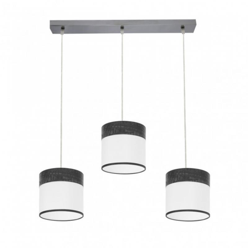 Regleta de diseño de la serie CLOE de color CROMO con pantalla BLANCA/MADERA NEGRA. Realizado en metal y textil. De estilo moderno, presenta en sus pantallas un contraste de colores, resultando muy original y decorativo para iluminar en dormitorios, comedores, salones y zonas de trabajo, creando un ambiente diferente. Posee tres portalámparas E27. Bombillas no incluidas. Su pantallas pueden colocarse a diferentes alturas, teniendo la regleta unas dimensiones de 35<,108x60x16 centímetros. En esta serie, encontramos a juego los colgantes de 40 y 50 centímetros de diámetro, regleta de 3 luces, plafón de 3 luces, lámparas de 2, 3 y 4 luces, el pie de salón, y un tamaño de sobremesa, todas las versiones combinan el color blanco con los colores de madera: madera clara, madera oscura, madera gris y madera negra. Una amplia gama para elegir el que mejor se adapte a su decoración dando un toque de color a la estancia que ilumina.