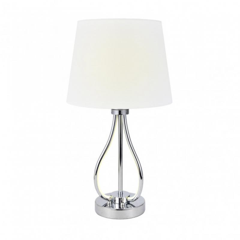 Sobremesa serie DUBROVNIK de color CROMO y pantalla BLANCA. Está realizado en metal y material textil. Presenta un diseño muy original formada por tres estructuras CON LUZ que convergen en la parte superior, con TECNOLOGÍA LED INTEGRADO  de 9 watios de potencia, 675 lúmenes y 4000K (blanco natural), creando un juego lumínico muy bonito y moderno, sobre la cual descansa una pantalla. También posee un portalámpara superior E27. Bombilla no incluida. Con dos encendidos independientes, para que usted pueda elegir el tipo de luz deseado. Ideal para decorar e iluminar cualquier estancia de la casa, siendo el complemento perfecto en dormitorios, salones y salas de estar. Tiene una dimensión de 46x26x26 centímetros.