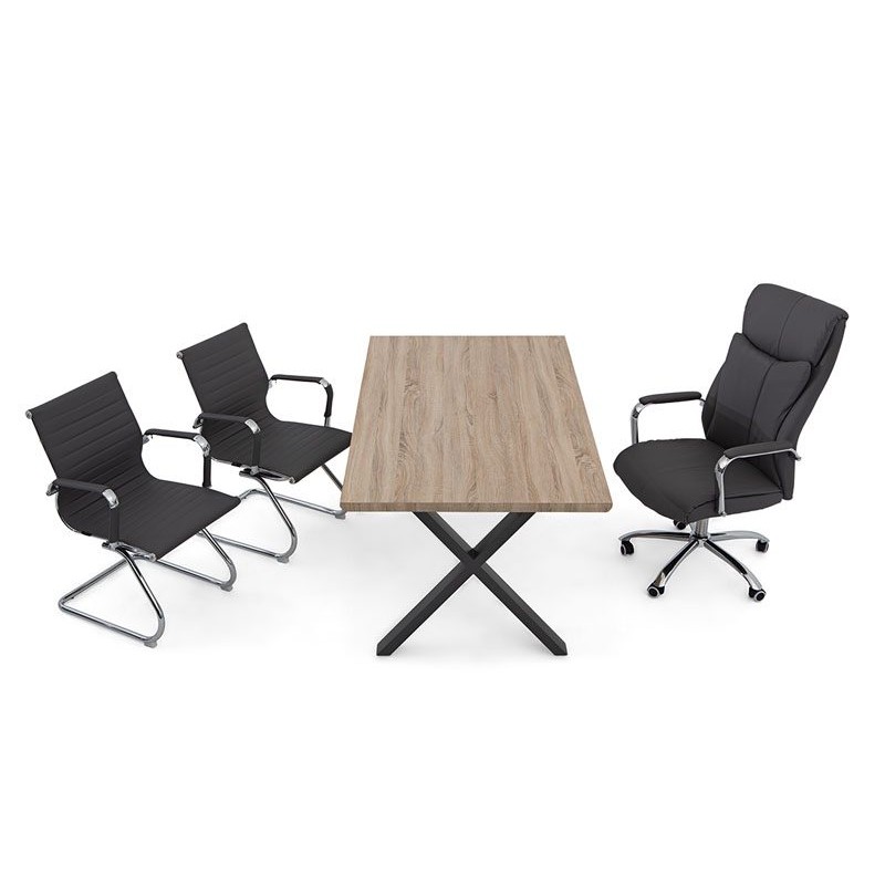 La mesa modelo Panor destacara en cualquier lugar de tu estancia, y más si lo acompañas de unas sillas que combinen a la perfección. Es una mesa que consta de un tablero superior en MDF haciendo forma con revestimiento melaminado en dos colores, también tiene dos patas en forma de aspa fabricadas en metal negro. Sus dos tipos de medidas hacen que puedas adaptarlo según tus necesidades y gustos, también sus dos colores de tablero, encajarán sin dudarlo en su decoración.