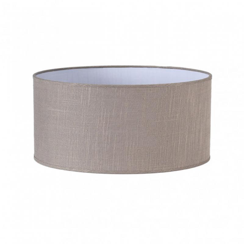 Pantalla cilíndrica de la serie HAPPY de color GRIS. Realizado en material textil de lino. Diseñada para agarre M10. Sus dimensiones son de 50Dx50dx25h centímetros. Disponibles las pantallas de esta serie tanto en color gris como en beis y en varios tamaños.