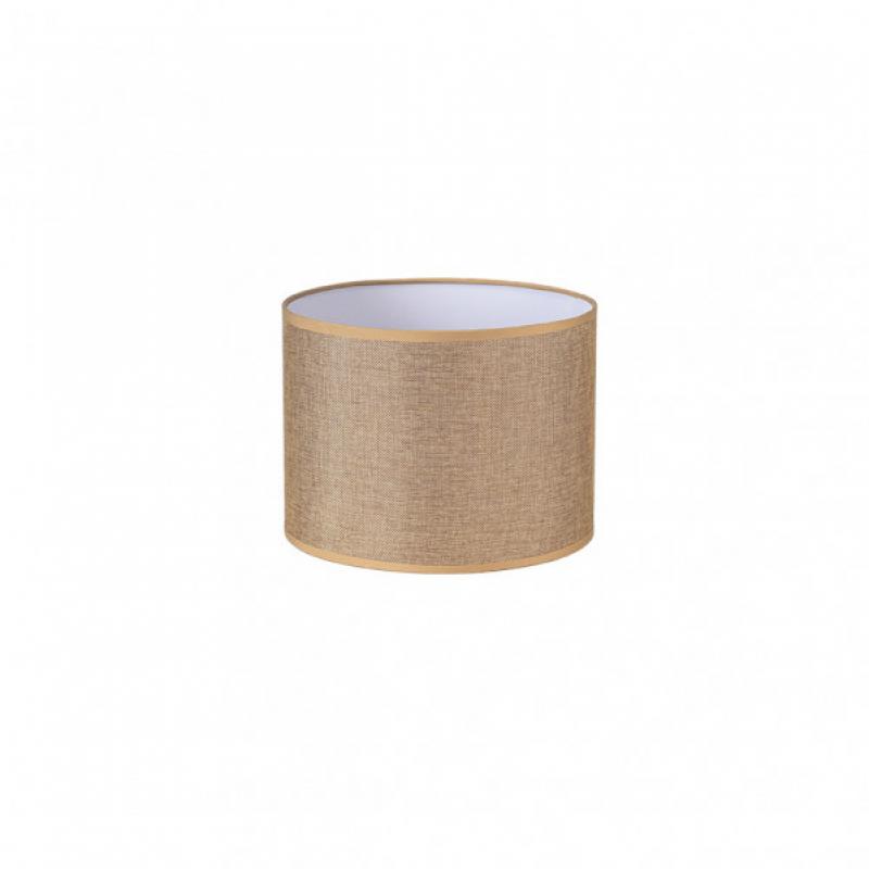 Pantalla cilíndrica de la serie JIN de color MARRON. Realizado en material textil de saco-yute. Diseñada para un portalámparas E27. Sus dimensiones son de 25Dx25dx20h centímetros. Disponibles las pantallas de esta serie en varios tamaños.