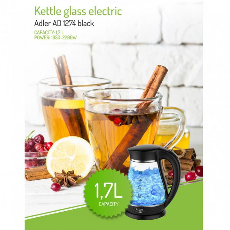 Hervidor De Agua Elect.de Vidrio Jarra Negro 1,7l 2200w.apagado Automatico.
